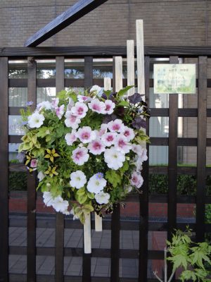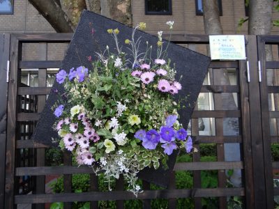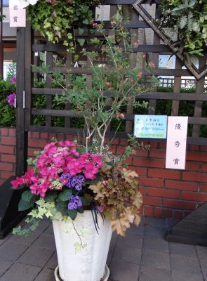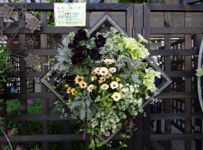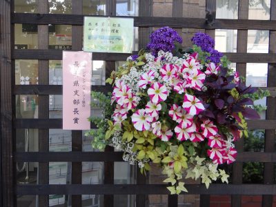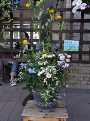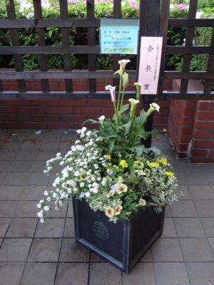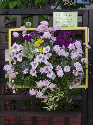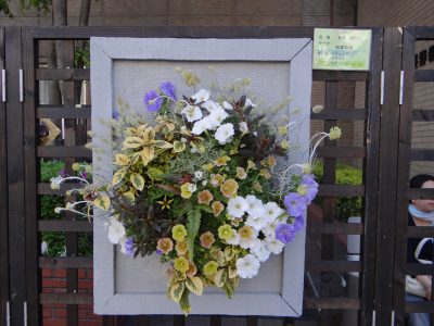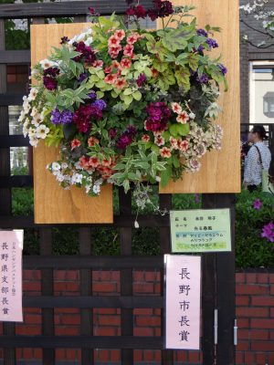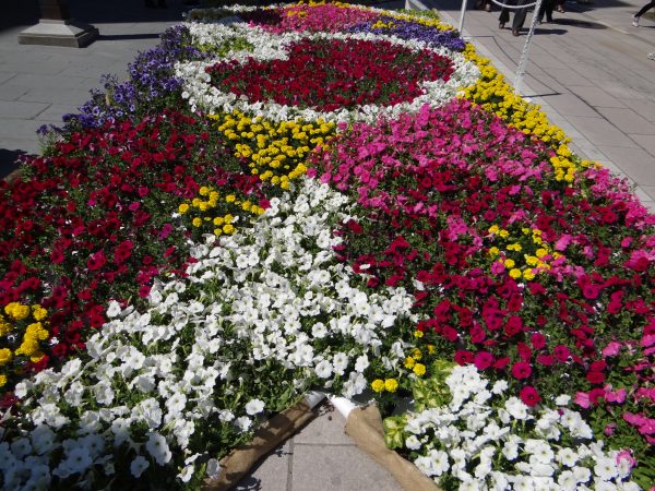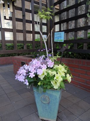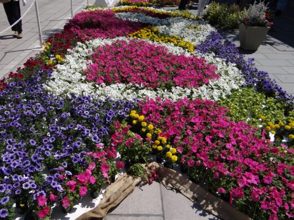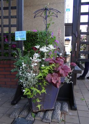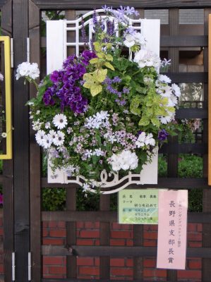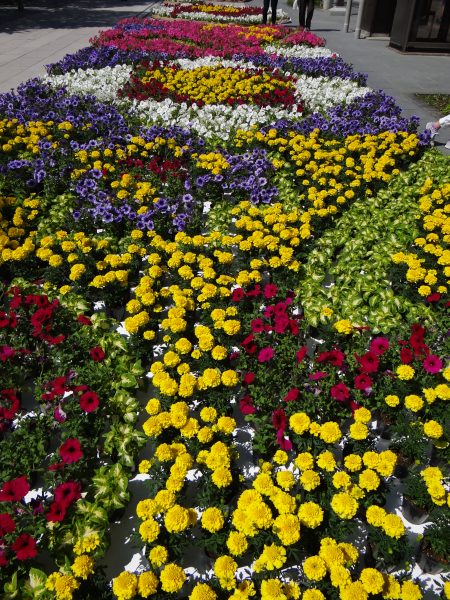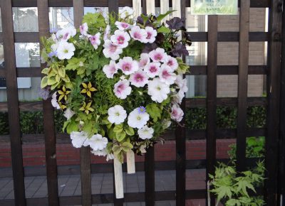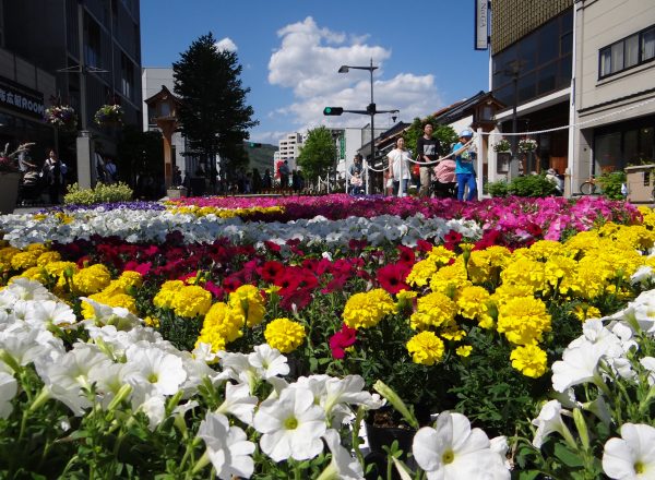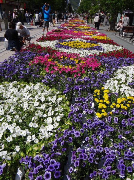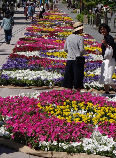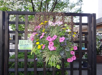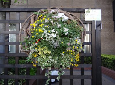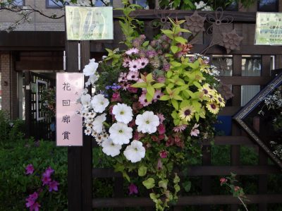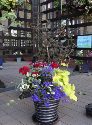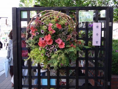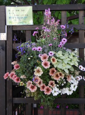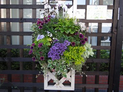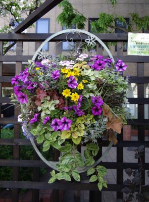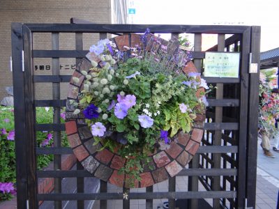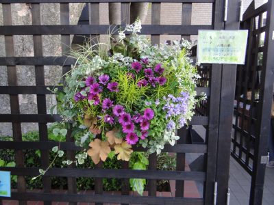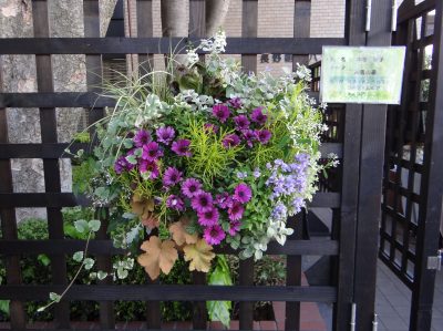 ハンギングバスケット、コンテナガーデンなどが数多く飾られる。