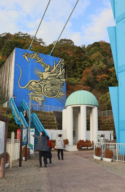 渓谷を流れる龍神川をせき止めた「竜神ダム」の上に架けられた橋。