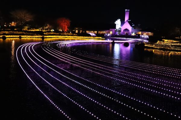 メイン会場(なばなの里敷地の一番奥)を出てすぐに100mのラベンダーの光のトンネル、そして里内へ。