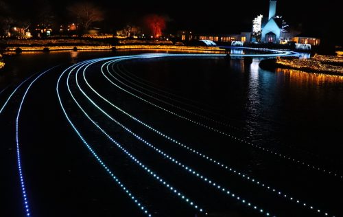 水上イルミネーションも、川の流れのように美しく輝いていました。