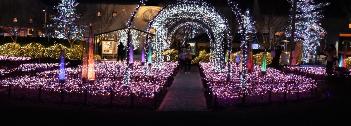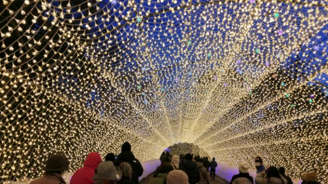 200mの光のイルミネーショントンネルを抜けると、そこがイルミネーションメイン会場。