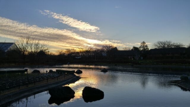 まだ明るい里内は、イルミネーションの黒い線が、形を縁取っているのが良く分かります。