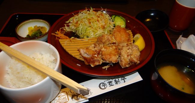 コストコ近くの「登利平」で、どれにしようかな?と迷うほどのおいしそうなメニューから「唐揚定食」をチョイス。