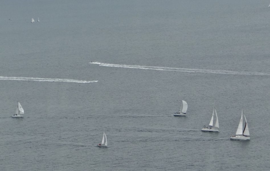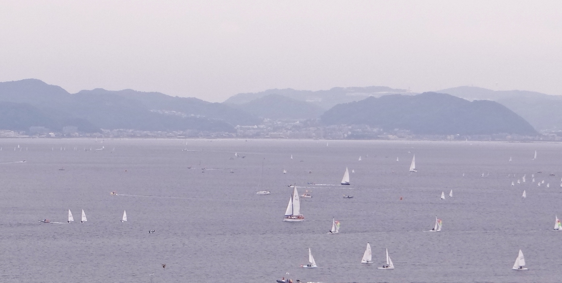 せっかくの視界も、「青い海原に白いヨット」のさわやかな夏のイメージからはかけはずれて、モノトーン調の落ち着いた眺め。