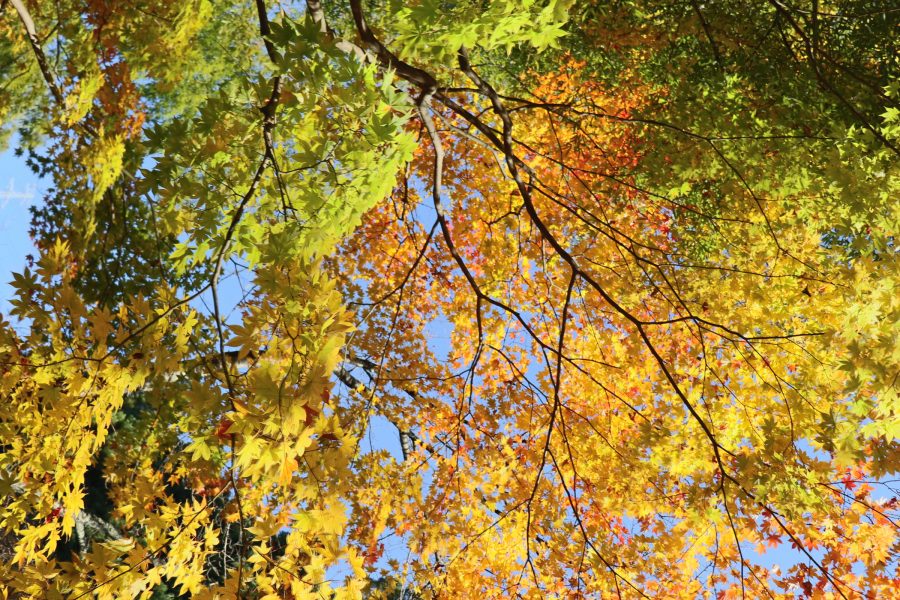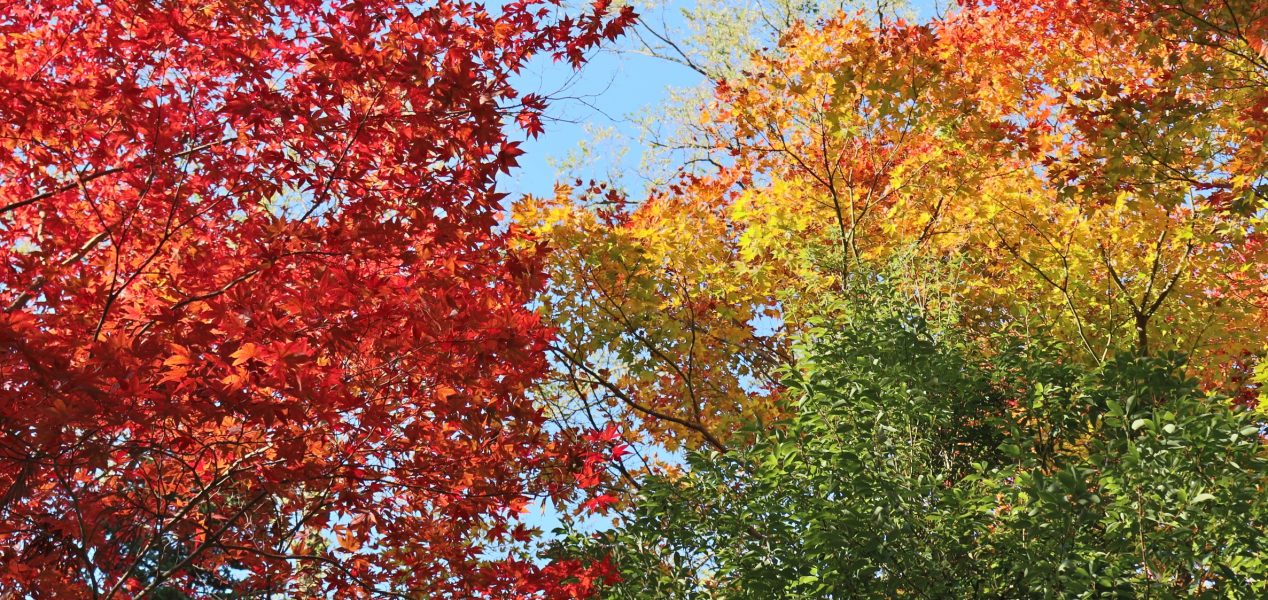 - 赤・オレンジ・黄色・緑、揃った葉の色