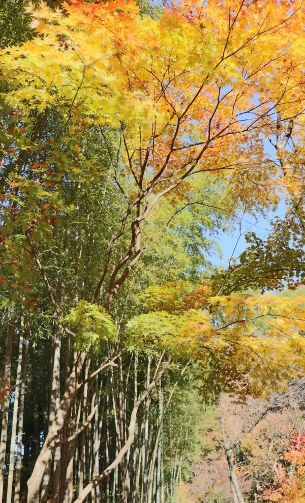 新緑から紅葉まで彩りを楽しめるモミジ、凛としてその姿を1年中変えることのない竹。