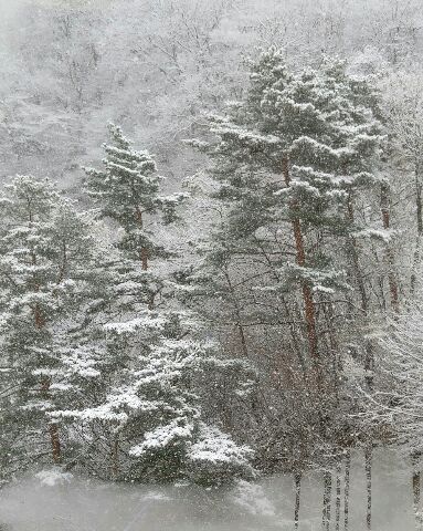 青森で見た雪は、細かく強風にあおられ横に降っていたが、鳴子温泉の雪は大粒で、素直に上から下に静かに降っていました。