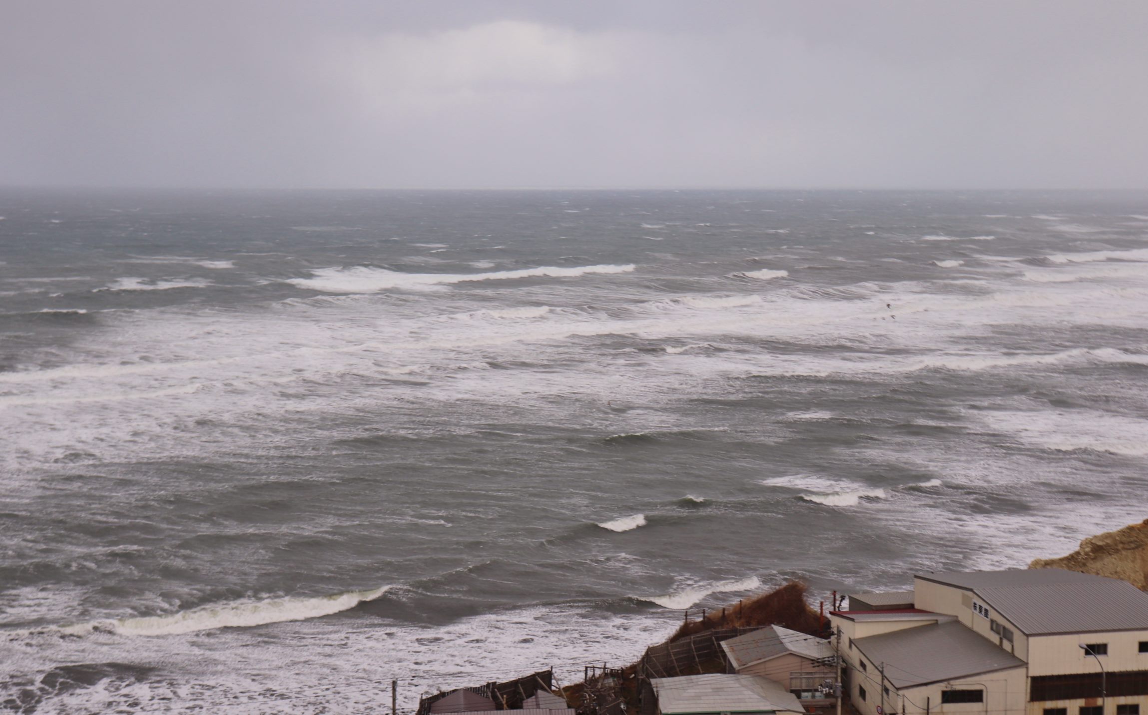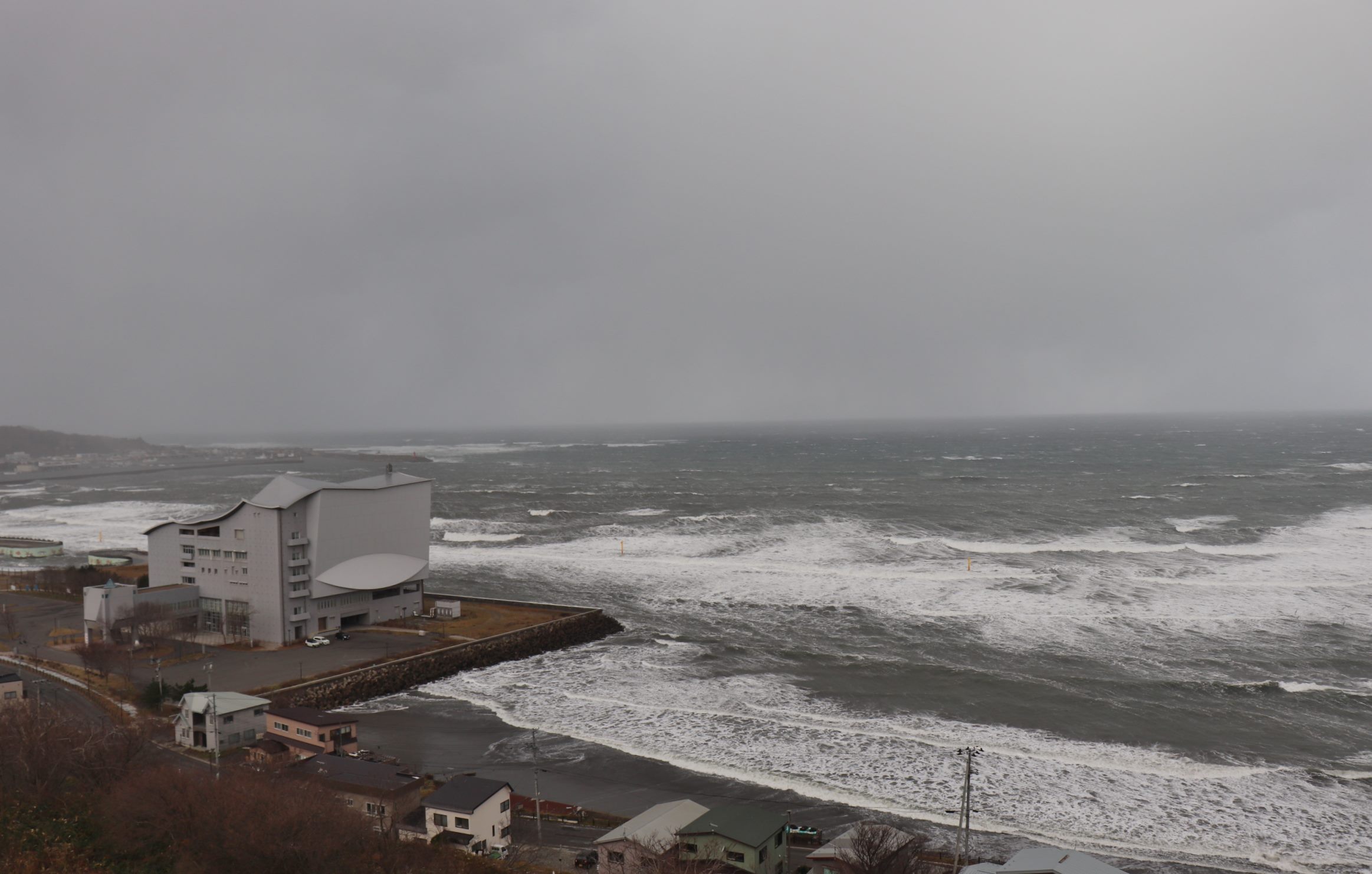 昔から日本海は荒海の印象が強くありましたが、朝起きてカーテンを開けると、まさにそのとおりの海が目の前に広がっていました。
