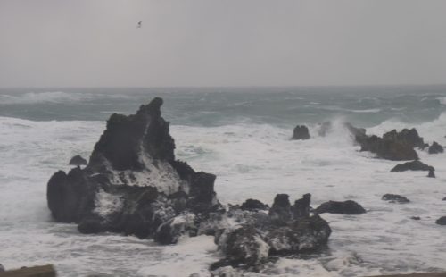 強風には参りましたが、晴れの天気では見ることのできない冬の日本海らしい荒海もまた迫力があって面白い。