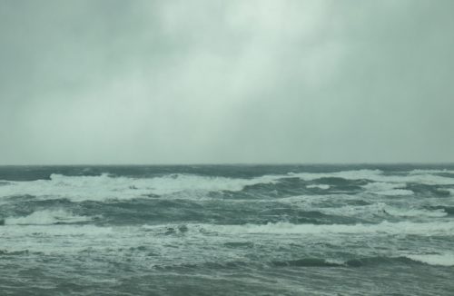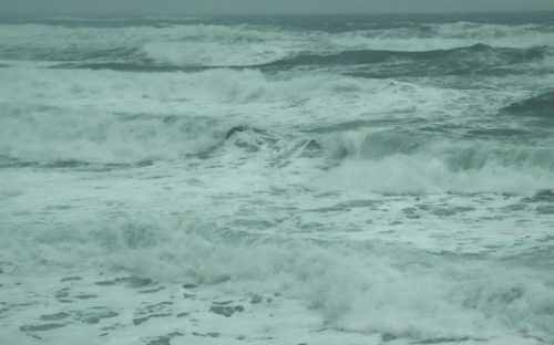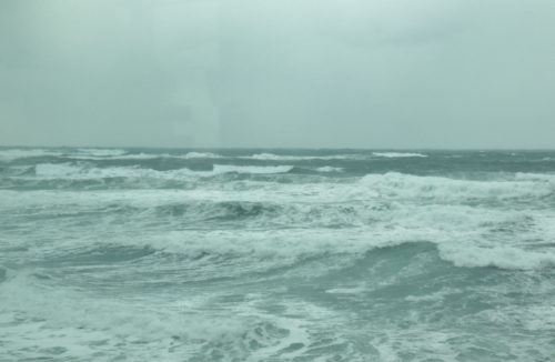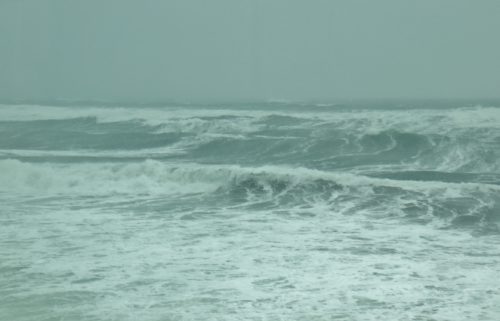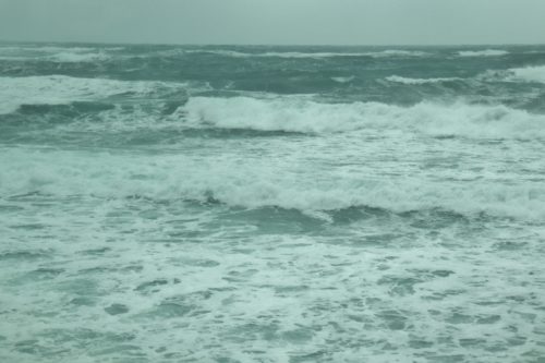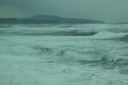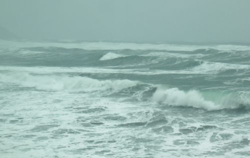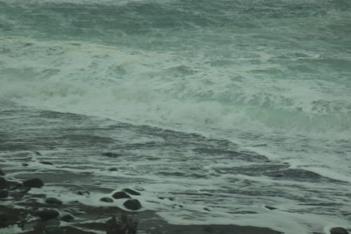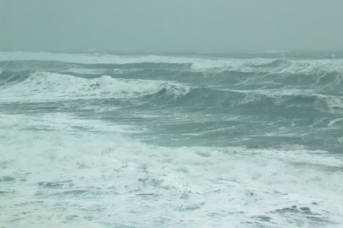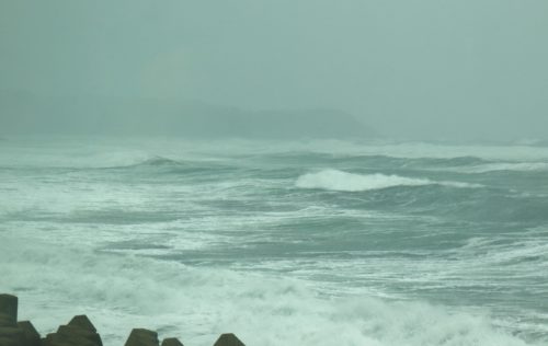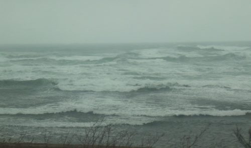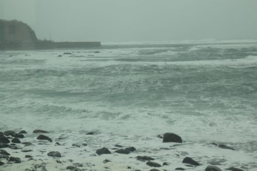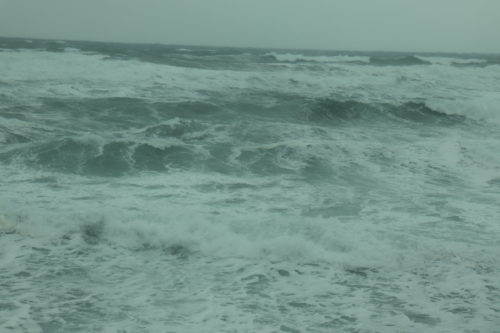 風が強いので、後から後から打ち寄せる白い高波は、時にいつも見ている雪の北アルプス連峰の山並みにも似て見えるほどの荒波。