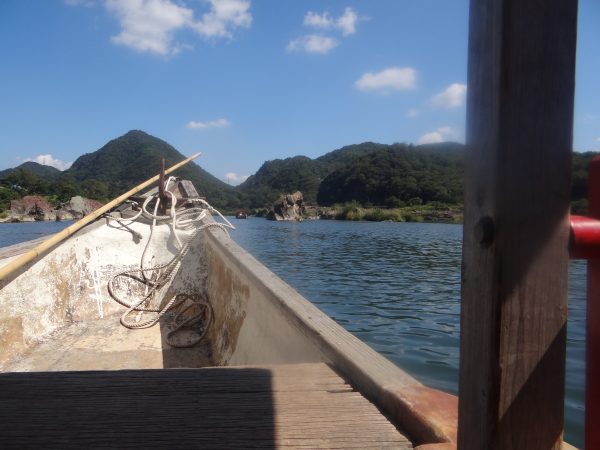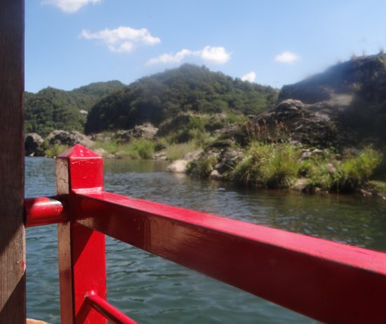 遊覧船では、ベテラン船頭さんのガイドを聞きながら、木曽川の雄大な自然を満喫。