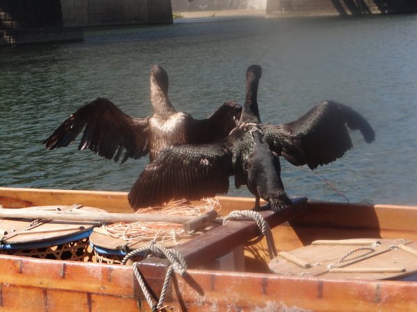 一人の鵜匠は、最高で12羽まで操れるとのこと。