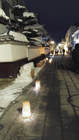 善光寺表参道の石畳に並べられた多くの灯ろう。