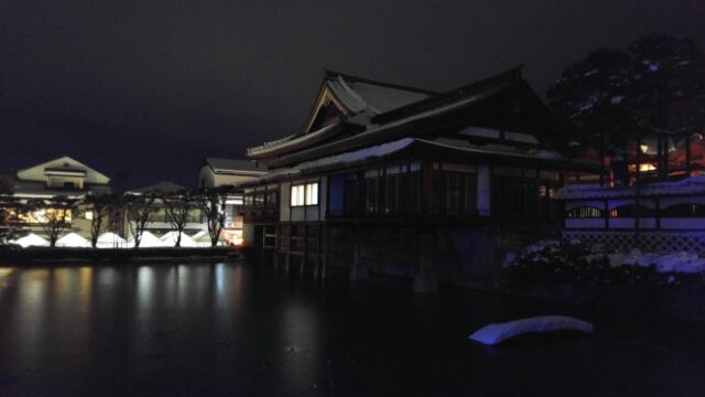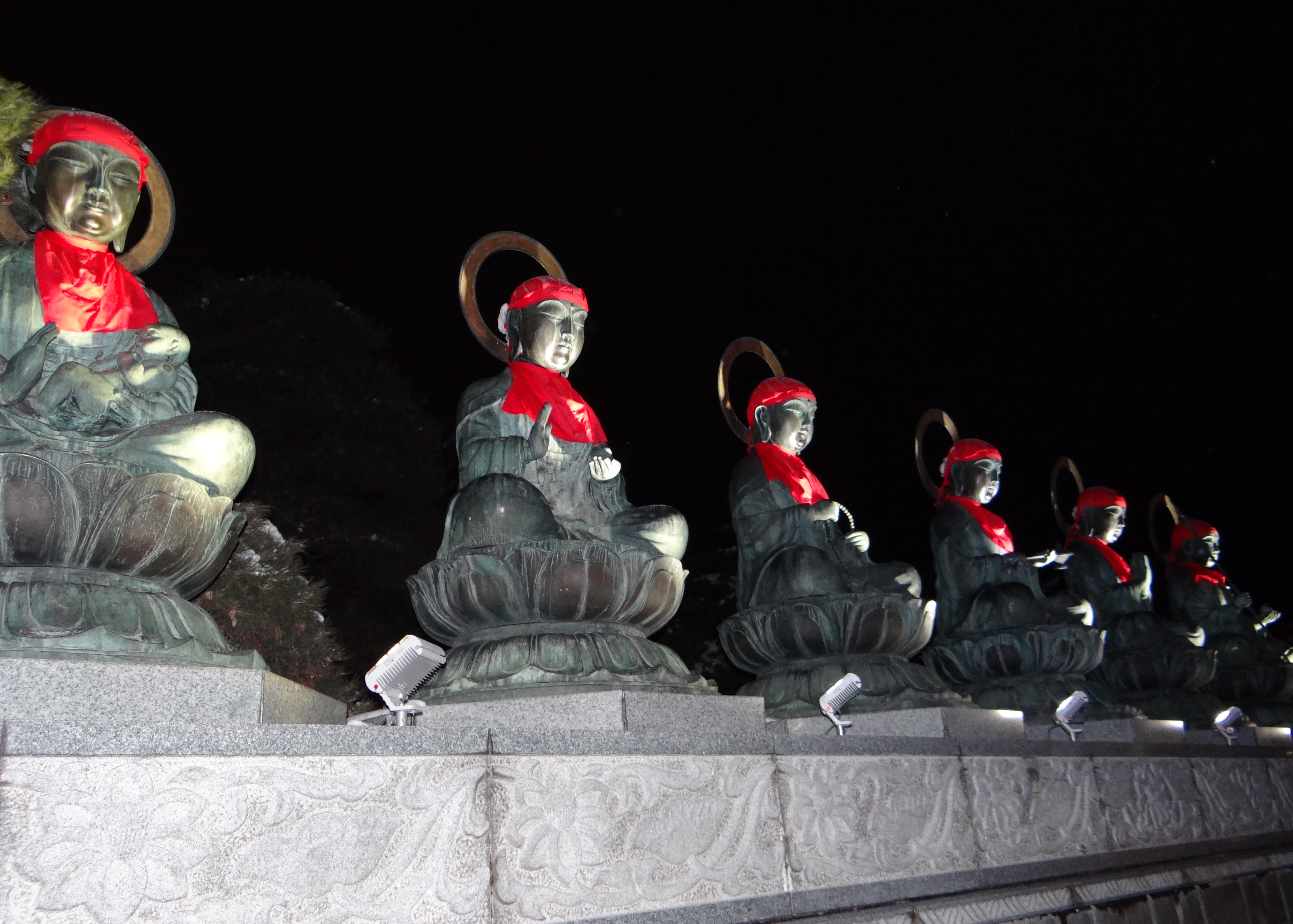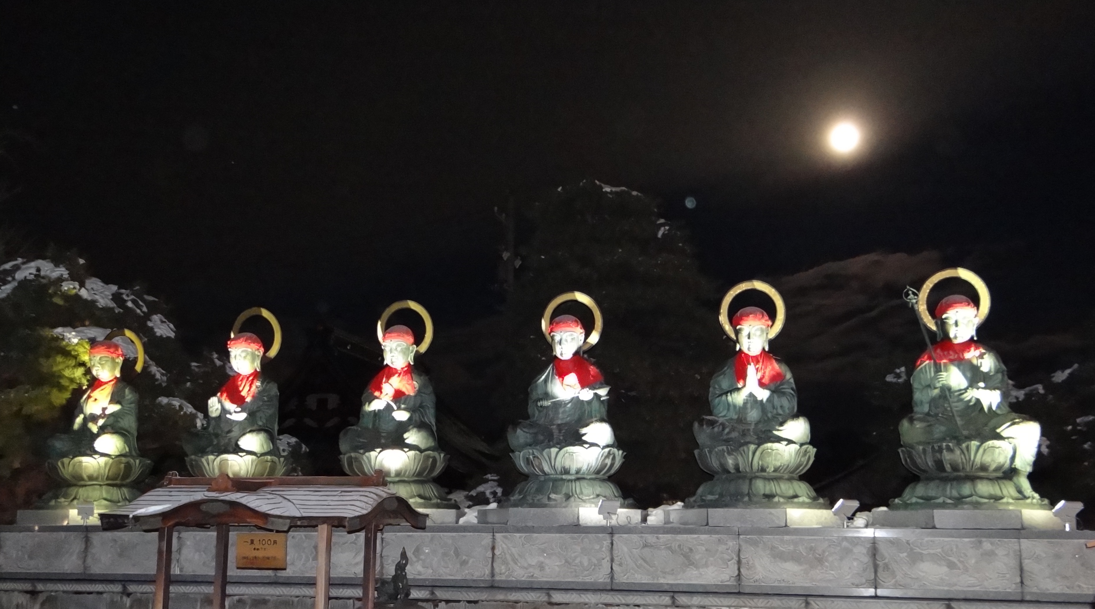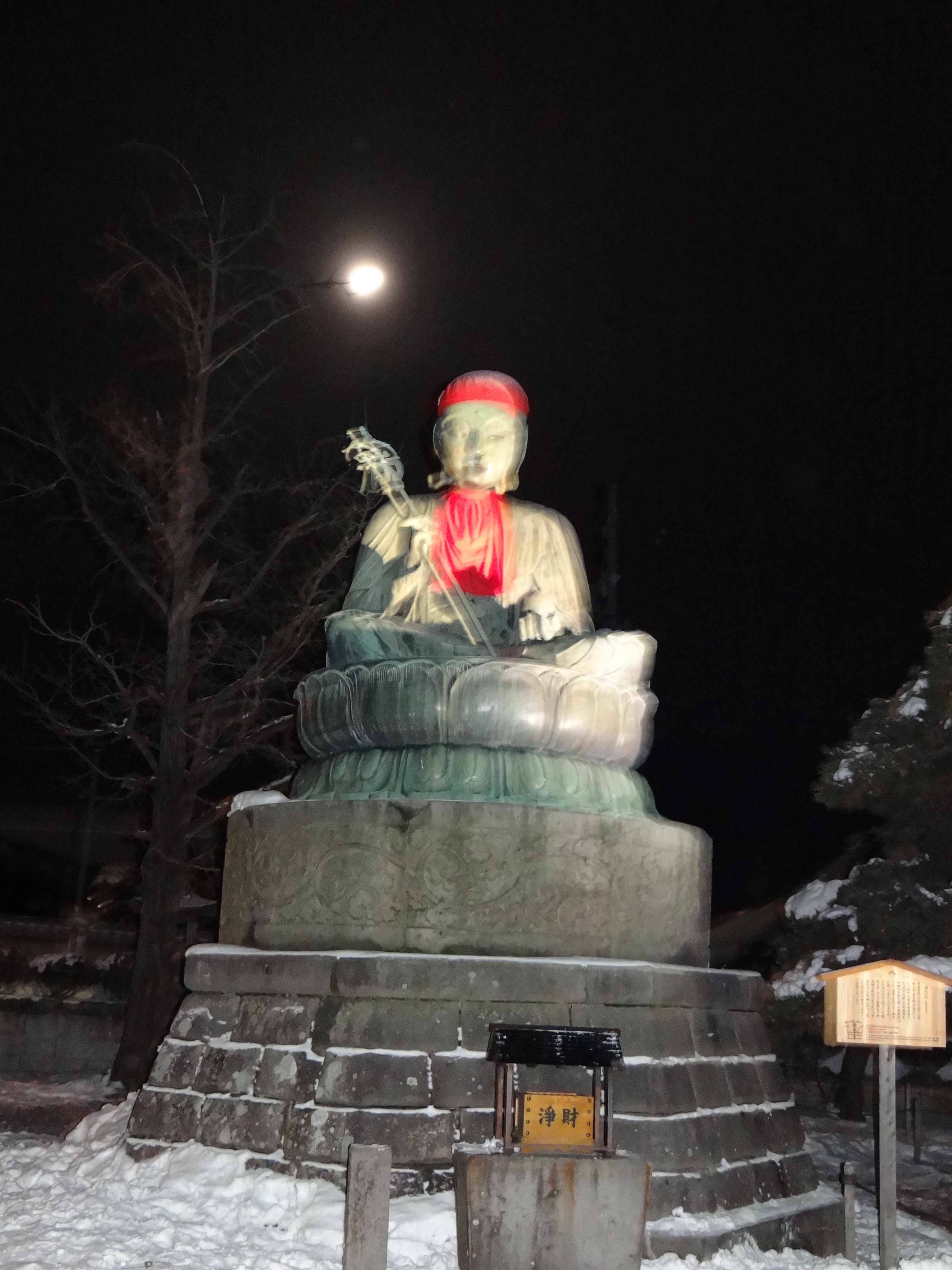 夜の闇の中で、白色ライトを浴びて座るその姿は、昼に見るそれとは違い、厳かな雰囲気がありいいものです。