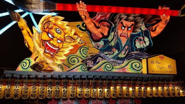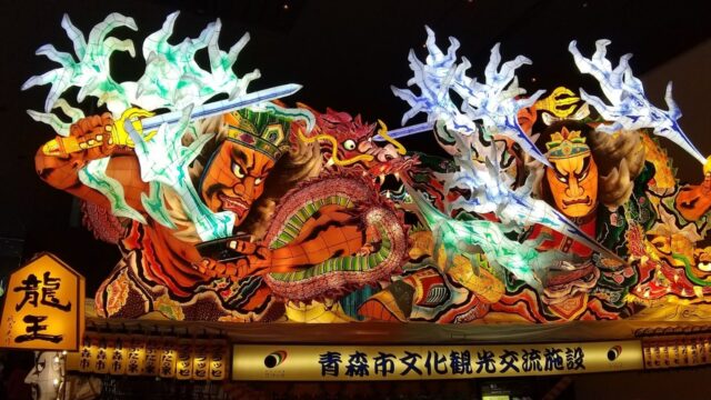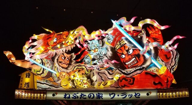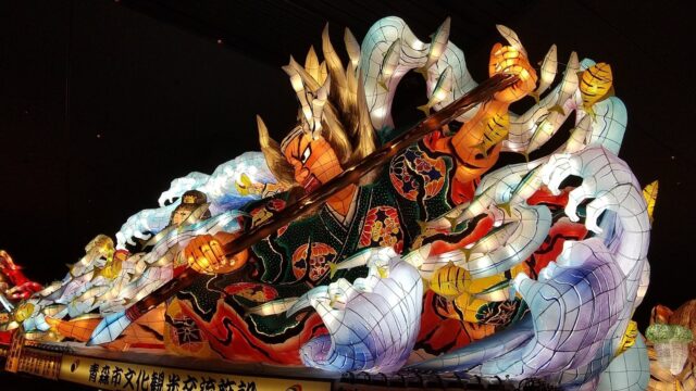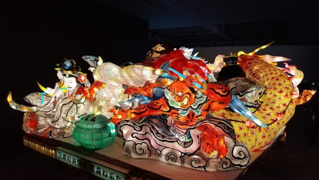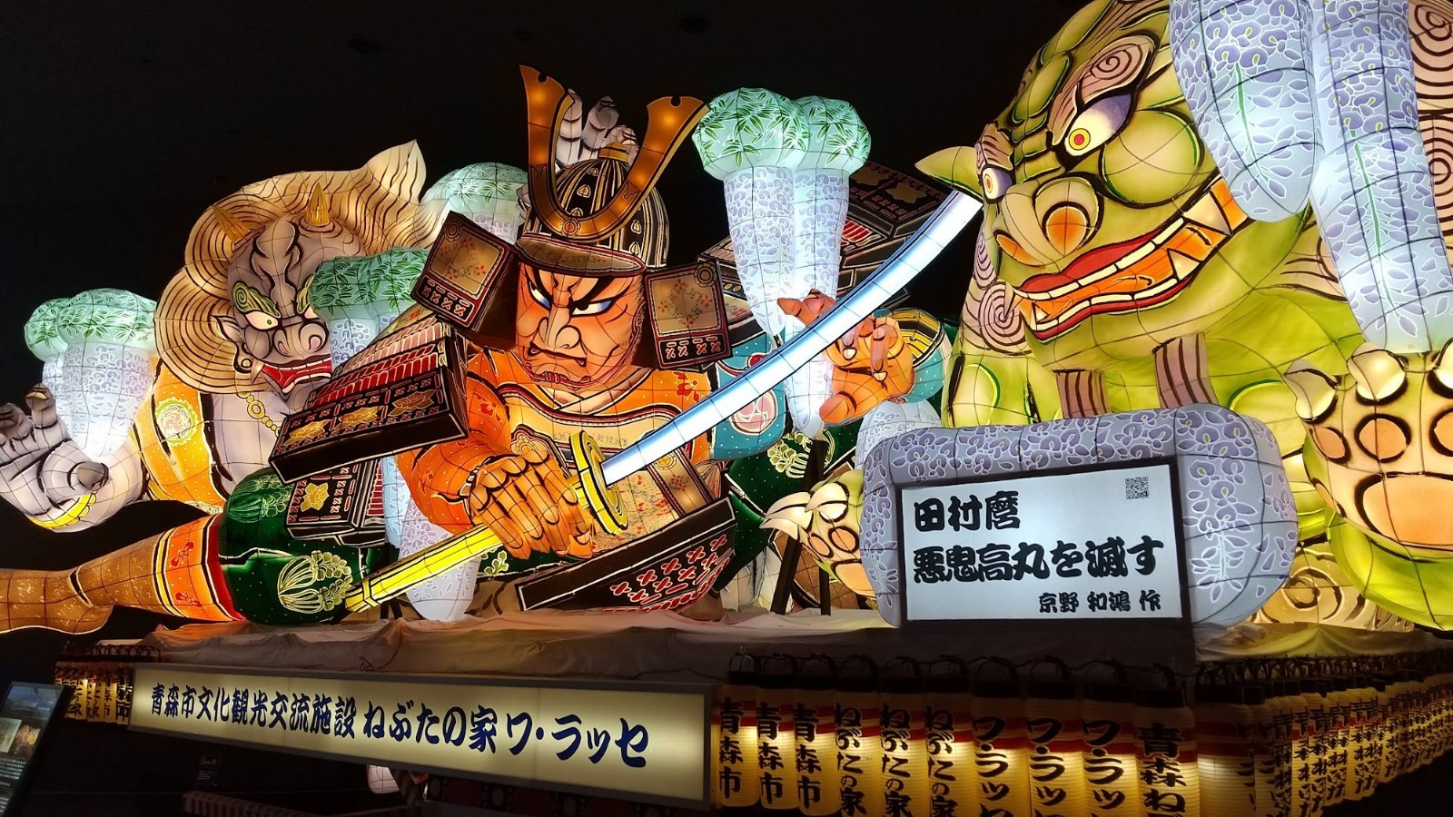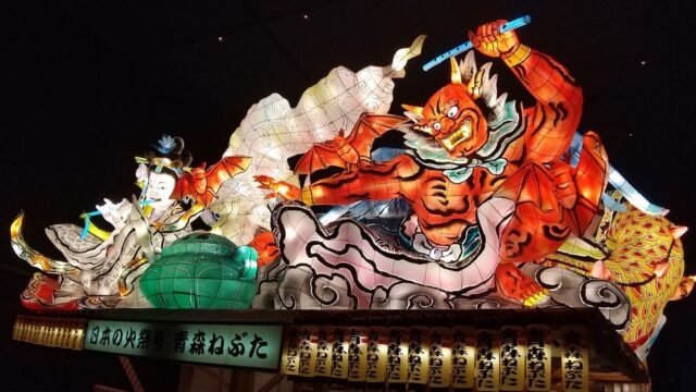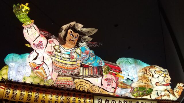 東北の冬は寒くて暗いイメージがありますが、ねぶたの家ワ・ラッセに入った瞬間、迫力のある巨大なねぶたが幾数体も展示されていて圧巻でした。ねぶたを前後左右からじっくり眺め、その立体感、色使いに驚きでした。