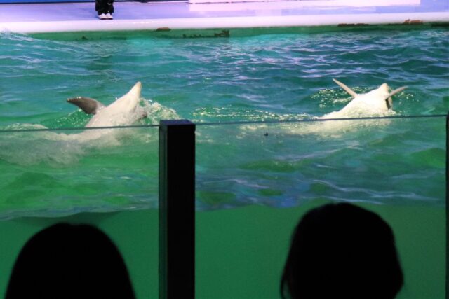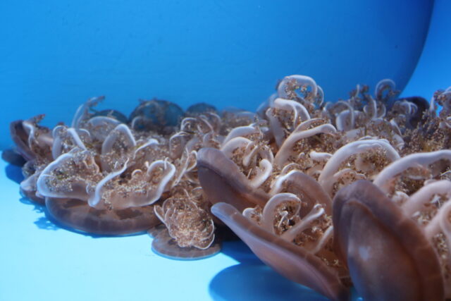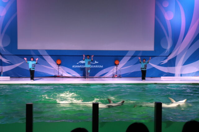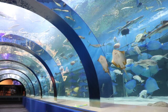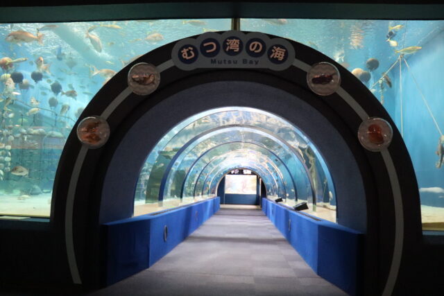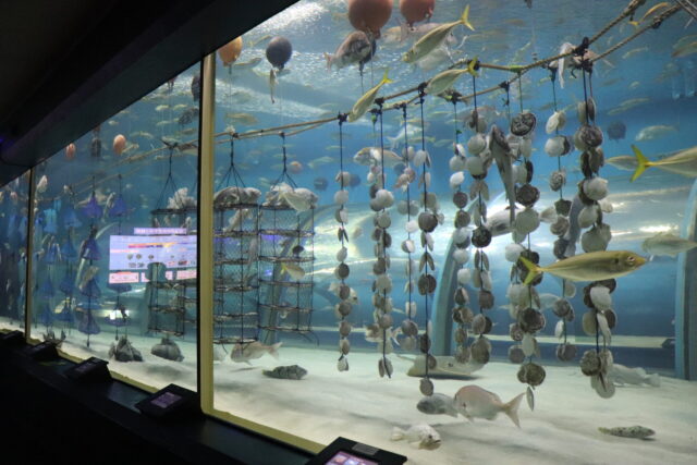 吹雪いていた外とは別世界の水族館の内。青森の名産である帆立養殖の様子や、青森の海の様子を見ることができました。