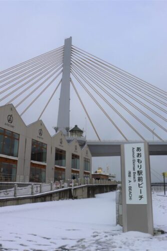 - 青森駅近くの斜張橋で青森港の貨物運搬の渋滞緩和を目的に造られた