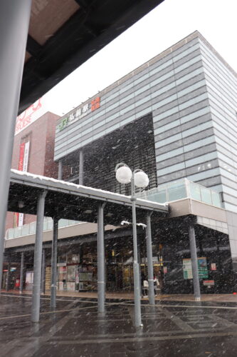 朝から雪降り。青森駅の近くにあるねぶたの家ワ・ラッセへ徒歩5分雪の中を歩いて行く。