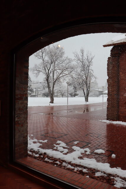 美術館の赤レンガ倉庫の建物が降る雪の白さと調和してとても印象的で、中の展示物にも増して素敵に見えました。