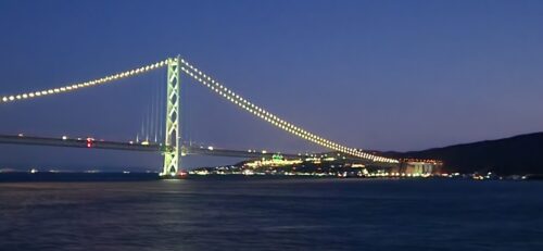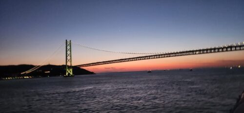 その途中、瀬戸内海に架かる3つの大橋の下を通過するとき、ライトアップされた橋を見れます。