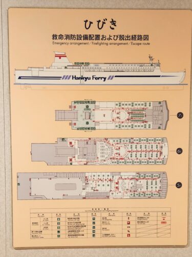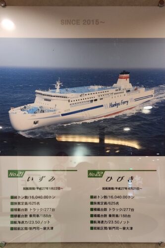 ただ帰りの阪九フェリーは「いずみ」号。船内のつくりは、行きの「ひびき」と全く同じ作りです。