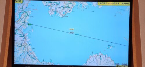 船室のテレビで、船の移動している様子がリアルタイムで分かります。