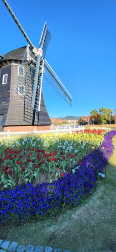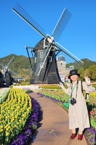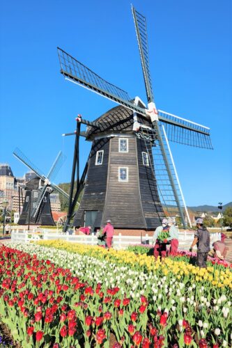 先ずはハウステンボスのシンボルともいえる風車がバックのチュウリップ園へ。