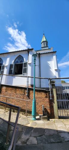 まずは、正面に「大浦天主堂」を見て、右に進めばグラバー園第一ゲートに行くようですが、私は長崎らしい風情のある狭い坂道や階段のある左側を上って行くコースを選びました。