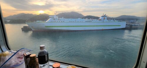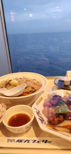 ただ夜寝ている時間帯がメインなので外の景色はほとんど見れませんでした。見れたとしても港を離れてしまえば瀬戸内海の海、海、海?!