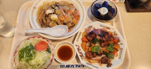 昨日の夕方、大阪の泉大津港を出て、今朝北九州の新門司港に着きました(1泊目)。着いてフェリーレストランで朝食。