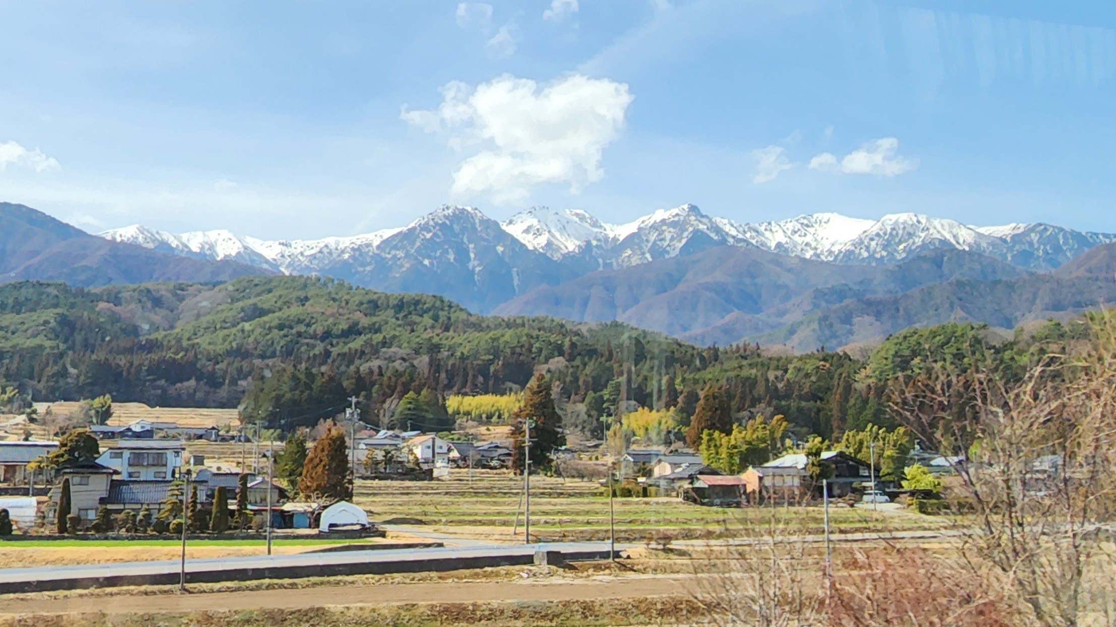 長野に近づくにつれ、山々の自然な景色が車窓から見え始めました。